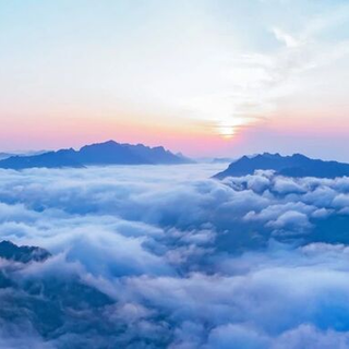 朝霞透过米仓山云层倾洒而下