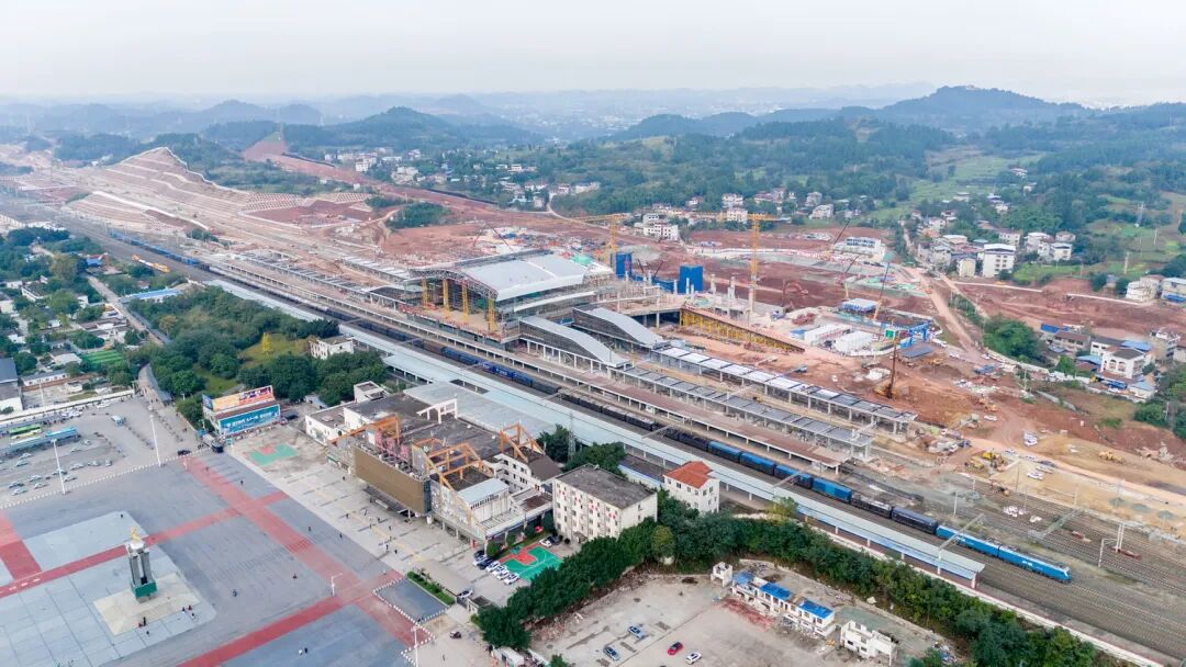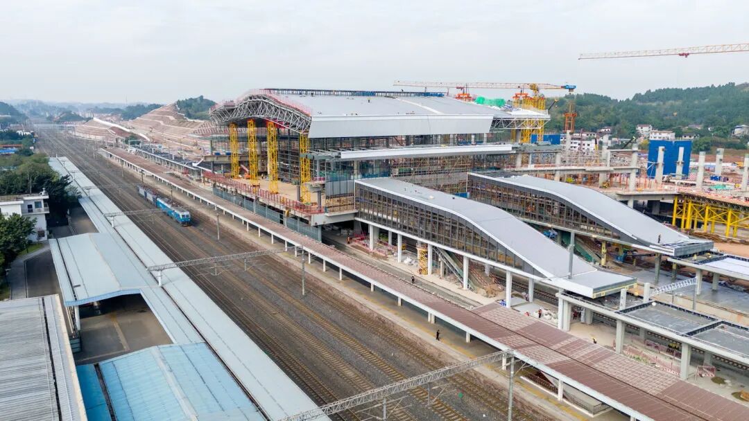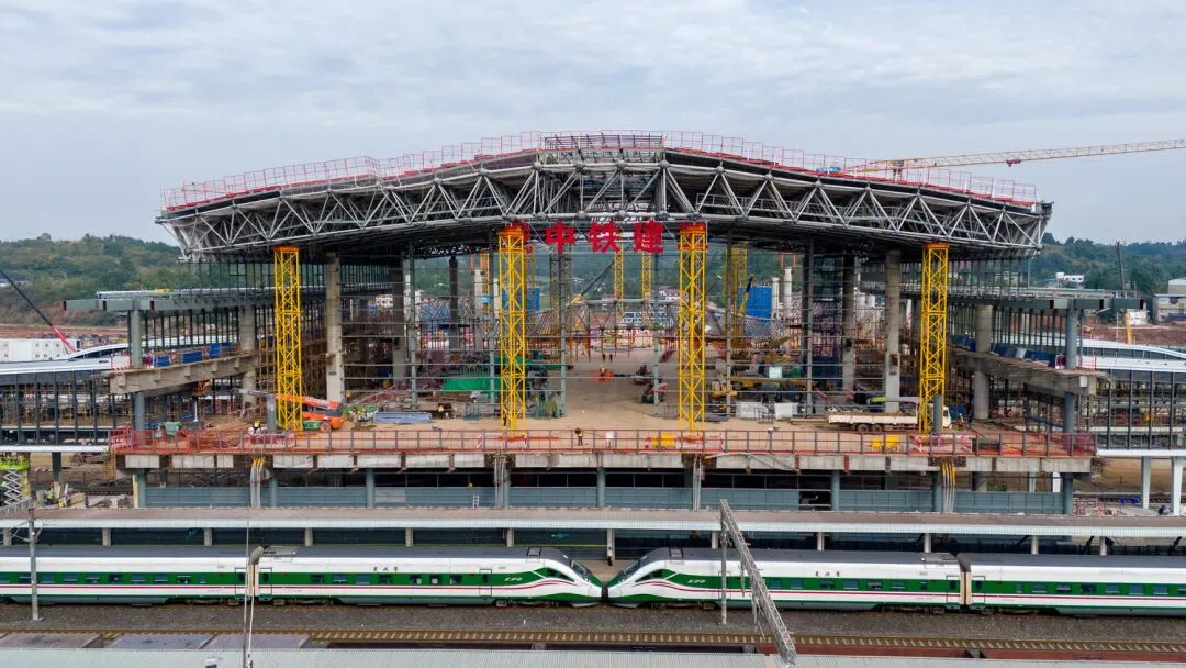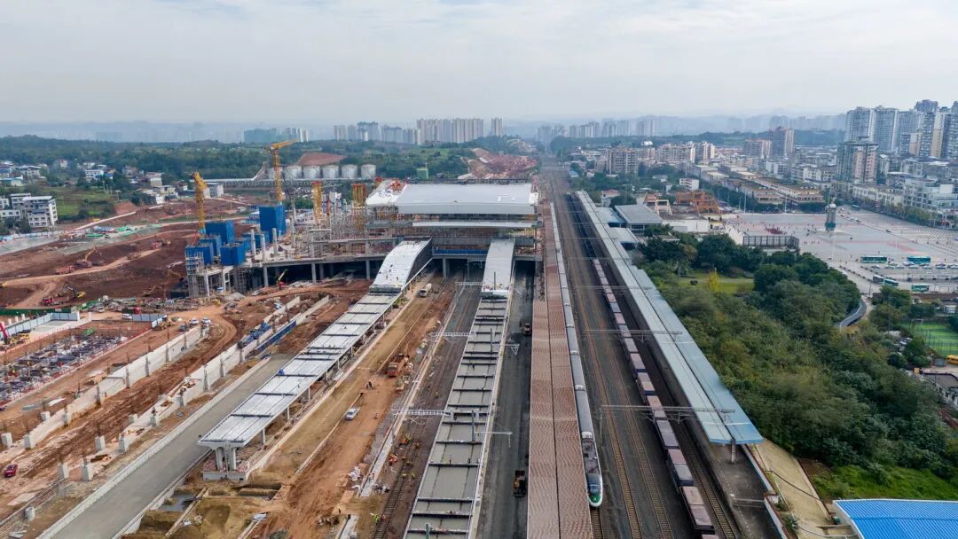 成达万高铁遂宁站现场施工图。全媒体记者 吴奉家/摄影