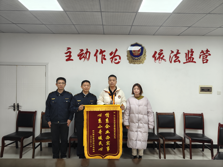 快递营业点负责人向乐山市质量监督管理局高新区分局赠送锦旗
