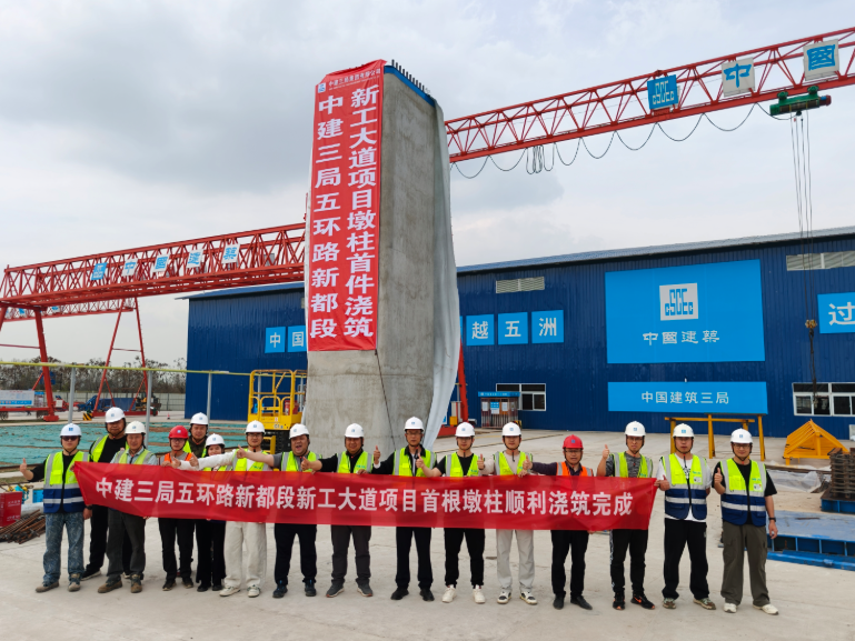 近日,成都五环路建设进度条 不断刷新 五环路双流怡心湖段 南侧主道施工已取得阶段性成果 3月24日,五环路新都段 新工大道项目首个墩柱浇筑完成 一起来看看 ↓ 随着最后一方混凝土浇筑到位,由中建三局四川公司承建的成都五环路新都段新工大道改建工程首个墩柱顺利完成浇筑,标志着该项目正式进入桥梁主体结构施工的关键阶段,为项目后续全线推进奠定了坚实基础。 施工现场 据悉,新工大道改建工程起于高东路,止于青白江区交界处,全长2.054公里,由原单层双向六车道城市主干道,改建为“双向六车道高架桥(主路)+双向六车道地面辅路”的城市快速路,是五环路新都段的控制性工程。此次完成浇筑的首个墩柱高8.6米、结构尺寸2米*2米,采用C50混凝土浇筑,总方量约34.4立方米。 项目负责人宦中渠介绍,该项目建成后,将与已投入运行的成绵高速第二复线(汉蓉高速)青白江互通实现高效交通转换,极大增强新都高新区(原工业东区区域)对外交通联系,有效缓解区域交通压力,进一步畅通新都与青白江、成都中心城区及德阳方向的通勤通道。