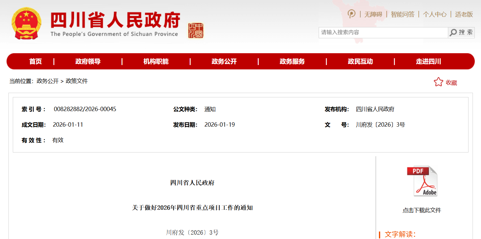 点击查看:2026年四川省重点项目名单