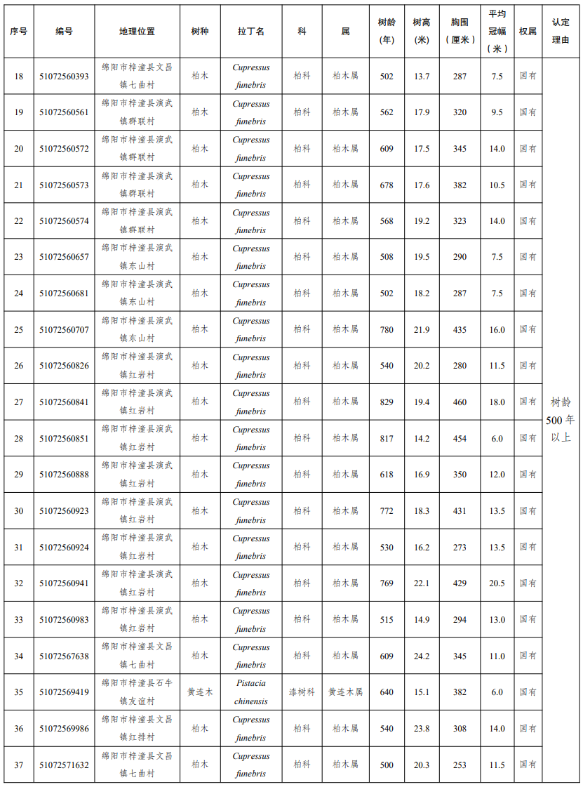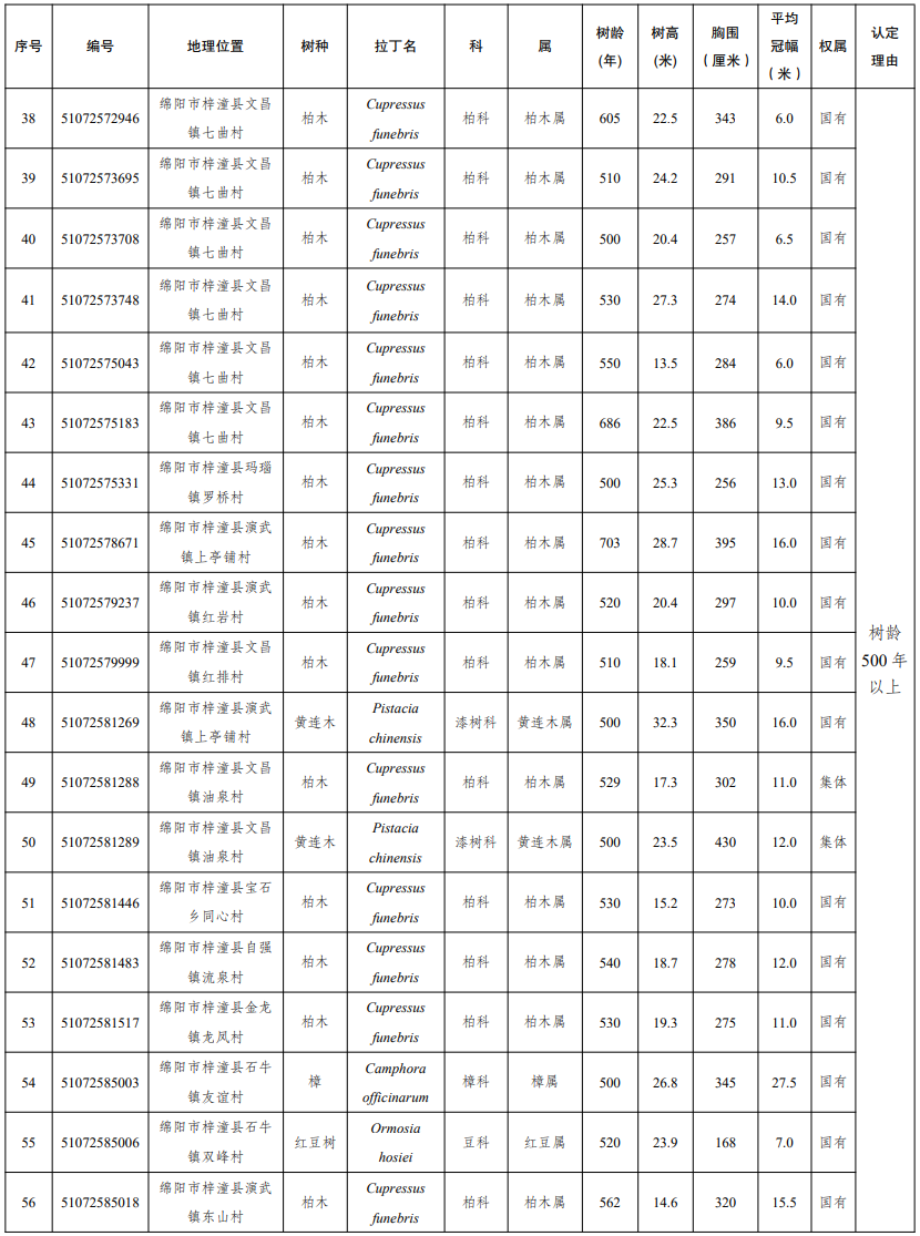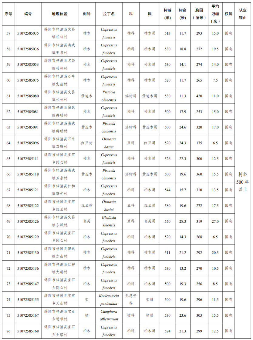 四川发布客户端消息 近日,四川省人民政府发布通告,公布2025年四川省新增一级古树及名木名录。2025年新认定四川省一级古树149株,名木1株。其中,树龄最大的古树为广元市剑阁县涂山镇厚子铺村的柏木,树龄1300年。
