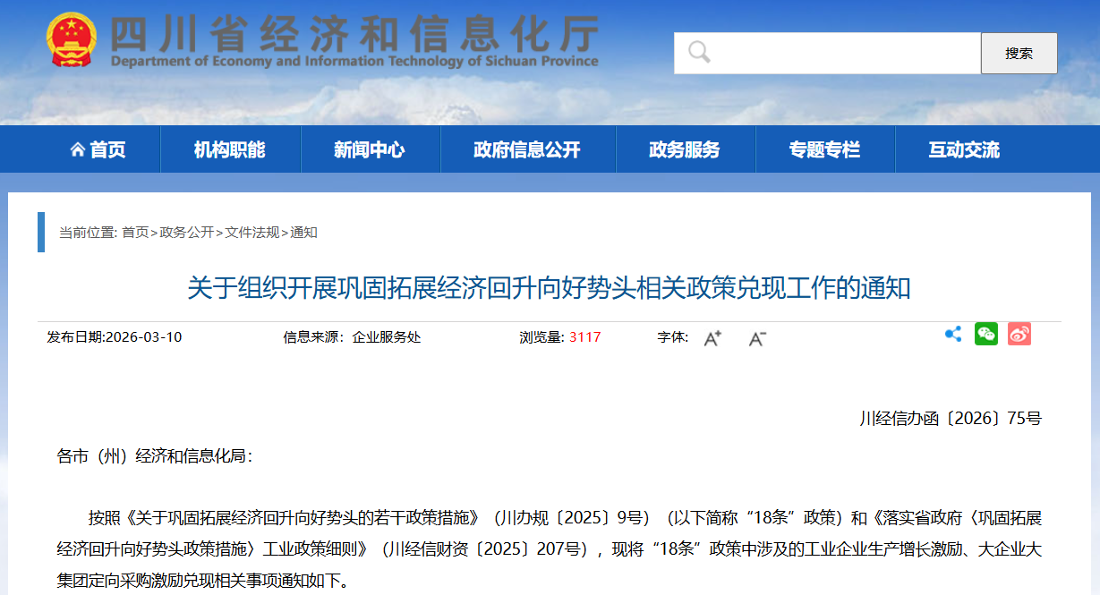 其中,大企业大集团定向采购激励申报主体还需满足额外要求,其中包括大企业大集团定向采购对象原则上不少于10户在川注册的中小企业法人实体等。