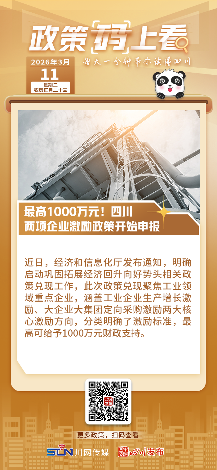 在工业企业生产增长激励方面,明确了分层激励标准:对2025年生产规模50亿元以上,且2025年1至12月和2026年1至3月生产规模比上年同期同时增长10%—20%、20%以上的工业企业,省级财政分别给予500万元、1000万元激励。