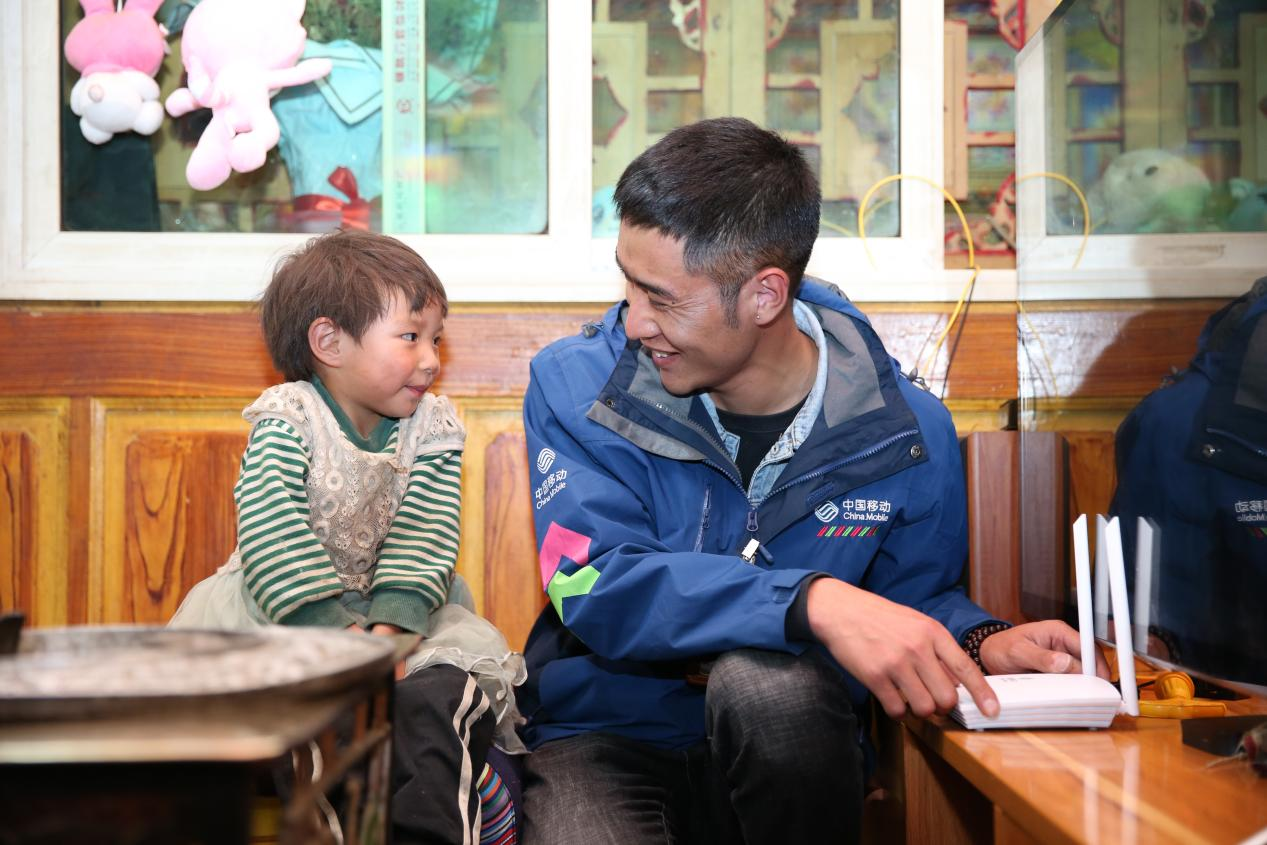中国移动四川公司工作人员在甘孜州提吾村村民家安装宽带