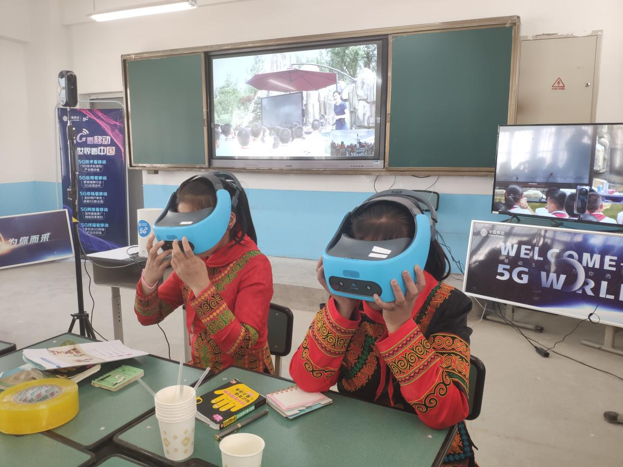 通过“5G+VR”技术,成都天府七中与凉山州昭觉县万达爱心学校的孩子们同上一门课。