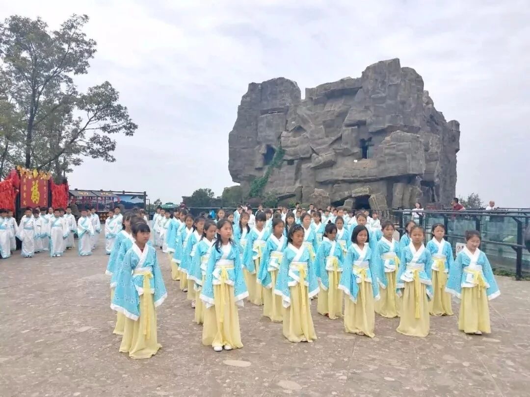 而在剑门关玻璃观景平台,100名身着汉服的小学生集体朗诵《蜀道难》。“噫吁嚱,危乎高哉!蜀道之难,难于上青天!剑阁峥嵘而崔嵬,一夫当关,万夫莫开”孩子们稚嫩清澈却又饱含激情的声音响彻整个剑门雄关。