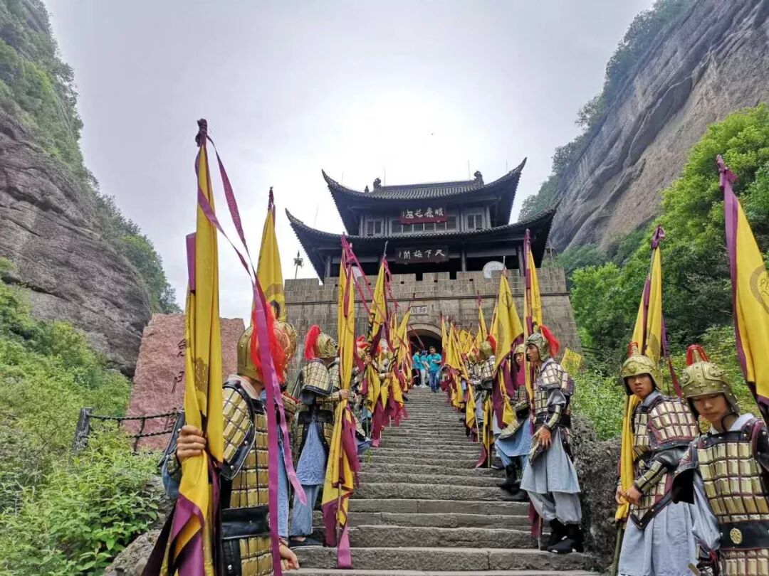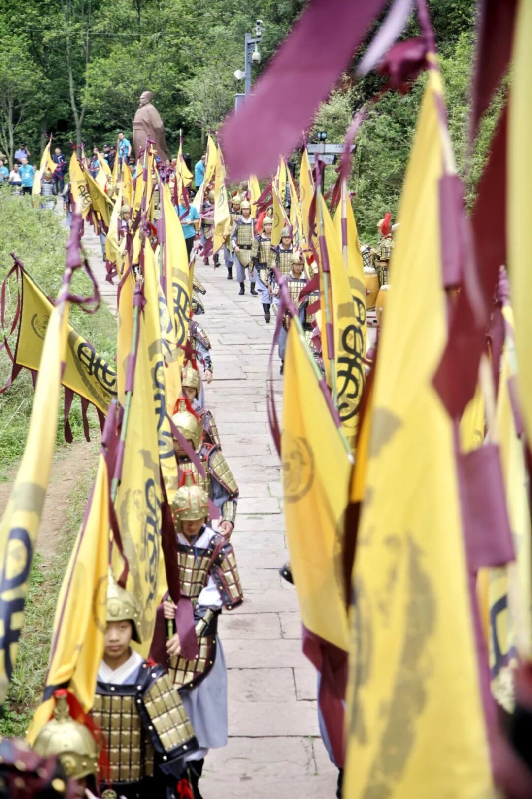 五月的早晨,剑门雄关还笼罩在迷蒙的雾气之中,在翠绿的群山之中,飘扬着醒目的黄色战旗,关楼前站立着身穿黄色战甲的武士,莽莽群山中回荡着慷慨激昂的声声呐喊…