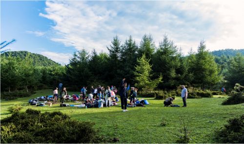 该露营基地位于马家坝乡境内月亮峡附近的松林中,小溪环绕,空气清新,静谧、悠闲,与大自然完美的融合在一起。占地面积共计2500余平方米,目前可搭建帐篷30多顶,并配套岩洞烧烤区、生活服务区等相关附属配套设施。