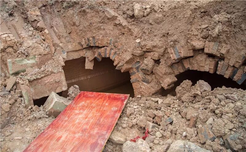 来到现场后,工地施工方解除了警戒线,移开了挡住墓室口的两块木板,记者发现经过一天的沉淀,墓室中的积水已非常清澈,浸水也停止了流淌。