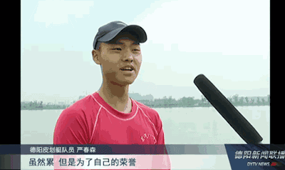 德阳皮划艇队严春森说,虽然累,但是为了自己的荣誉,希望和自己配艇的那个兄弟争取拿冠军。
