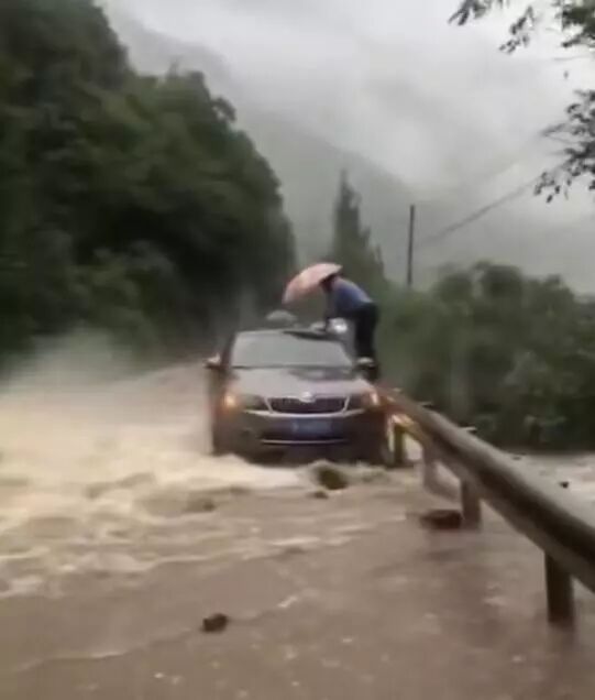双汇镇 · 突发山洪司机被困 民警爬车救人