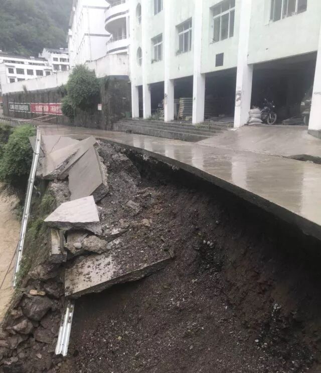大滩镇大滩小学校门口外的道路因路基处于河边,经河水冲击导致路面垮塌。据了解,该校共340名生,出于安全考虑,学校已将80名幼儿园学生放假,并通知家长全部接回家。