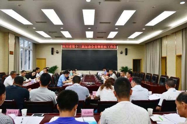 为进一步推进省十三运会竞赛组织工作,2018年7月3日,四川省第十三届运动会竞赛组织工作会在市政府应急指挥中心召开。省十三运会组委会副主任、副秘书长、广元市政府副市长吴桂华,广元市委宣传部、市委市政府接待办、市机关事务管理局、市体育局等20个部门及各承办学校相关负责人参会,会议由省十三运会组委会办公室执行副主任、广元市政府副秘书长王金川主持。