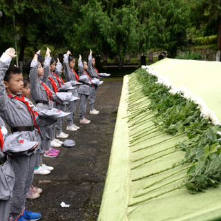 从千秋大道拾阶而上,牌坊、英烈墙、单体墓碑、集墓区、无名烈士纪念碑........一处处红色遗址遗迹,让社会各界人士受到了一次有深度的爱国主义教育。今天,当地2000余名师生和社会各界人士来到这里,以各种方式,瞻仰英雄墓,凭吊先烈魂。