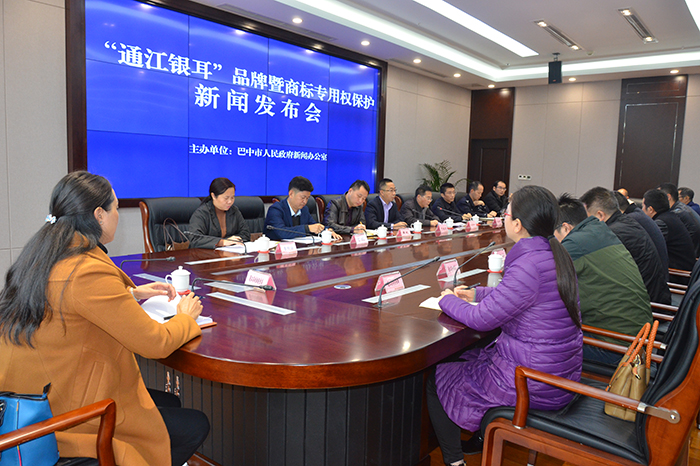 四川发布客户端消息 11月19日,“通江银耳”品牌暨商标专用权保护新闻发布会在巴中市通江县召开。巴中市新闻中心副主任罗福荣主持发布会,市工商局副局长刘新加、通江副县长黄欢、县政协副主席张晓君出席发布会。