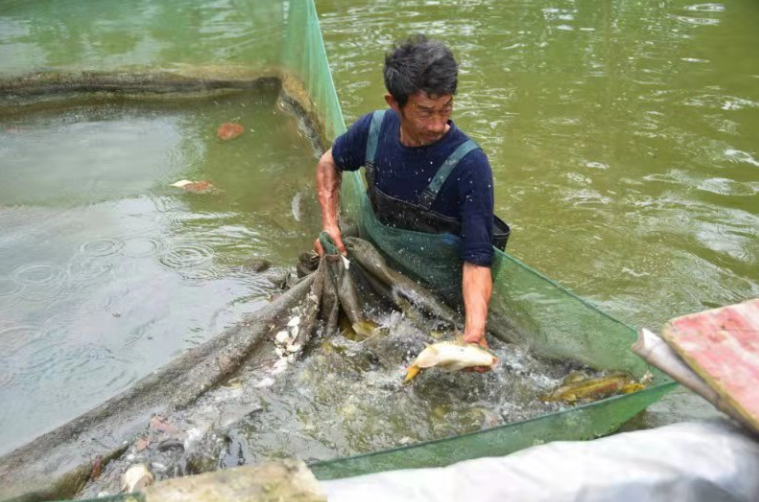 养殖经验不断改善,鱼的产量不断提高,养殖规模也不断扩大,周从武不仅还完了钱,他的鱼也逐渐被知晓。每逢集市人多的时候,他都会把自家的成鱼和鱼苗带去市场销售,赶来买鱼的顾客也络绎不绝。“当场天一天卖得到一百多斤鱼,我们逢双日子,冷场天要在屋里整鱼,然后收入还可以,一场卖得到一千多块钱,纯利润有四五百块钱。”周从武高兴的说。