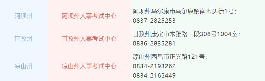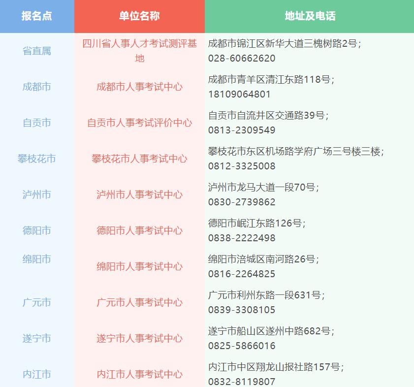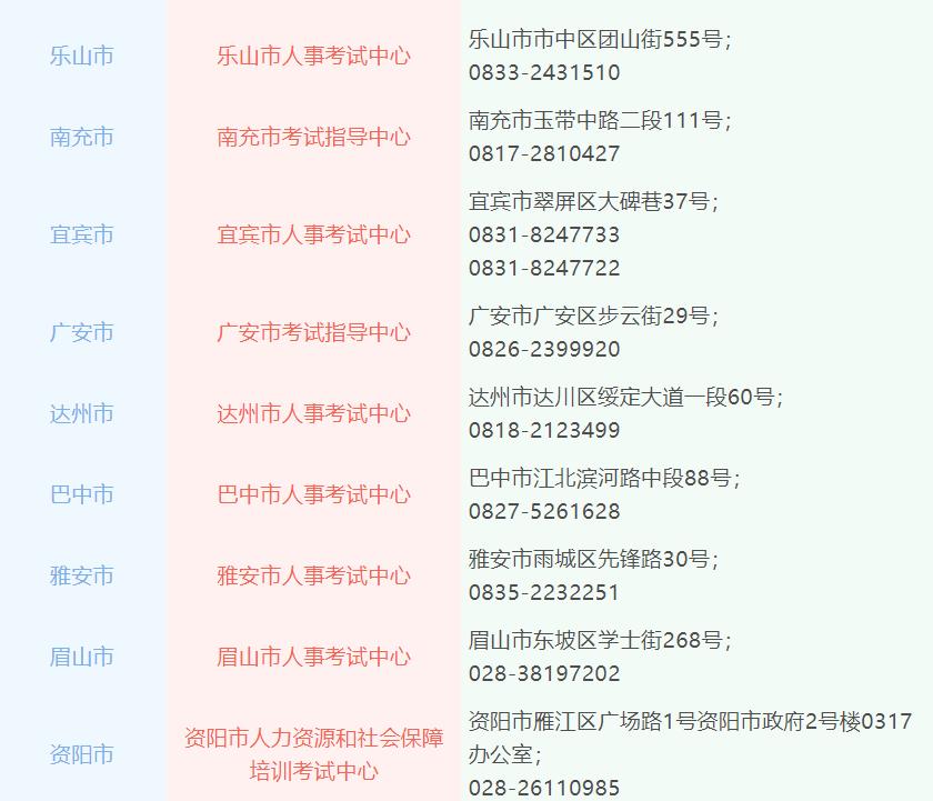 各报名点所在地人事考试机构咨询电话