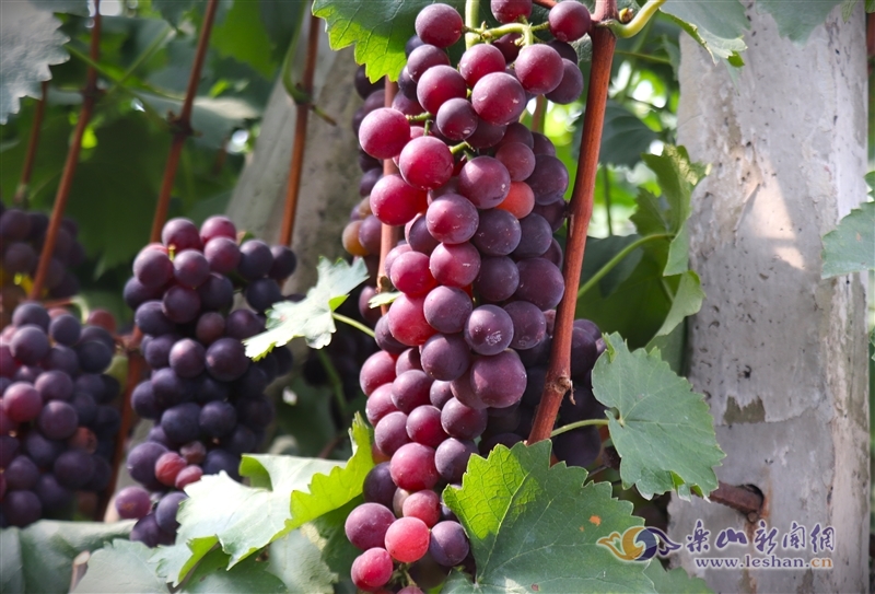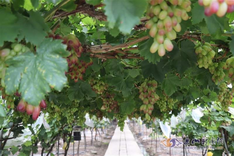 乐山新闻网讯(记者 包思雅)七月盛夏,骄阳似火。随着阳光的照耀和温度的逐渐升高,葡萄迎来了丰收季。7月19日,在乐山市夹江县甘江镇新生村的葡萄产业园区里,硕果飘香、美不胜收。