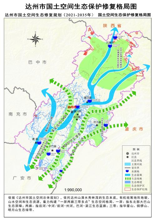 《规划》内容侧重项目实施性和操作性,在达州市范围内所有与国土空间生态保护修复有关的空间政策制定、土地利用、城乡建设、环境保护、各类工程安排等需要符合规划要求。规划总面积1.66万平方公里。规划期为2021—2035年,近期至2025年,中期至2030年,远期展望至2035年。