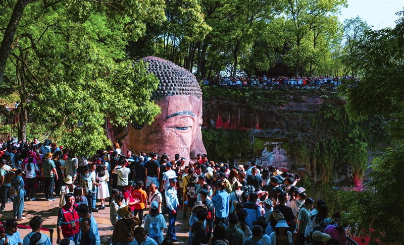 今年以来,乐山大佛景区文旅市场持续火热,游客人数屡创历史新高。来自全国各地的游客相约乐山大佛景区,品读大佛文化,游山水、观大佛,感受千年大佛的独特魅力。截至8月28日下午17时,景区今年已接待游客501.2万人次,日均接待2.08万人次。