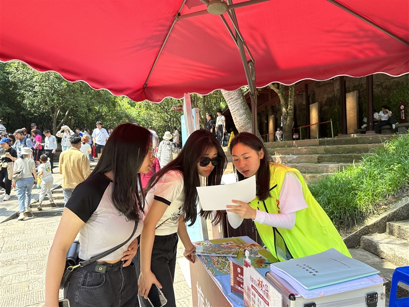 景区持续做好旅游志愿服务工作,采取“常态设点+旺季统筹”举措,打造“全天候”服务平台。在乐山市博物馆、游客中心、北门广场、集凤楼、毗卢院路口、原九曲栈道入口处设立了6个常态化志愿服务点,旅游旺季志愿咨询服务站点达30个,服务点365天日常值守。值得一提的是,今年5月,景区新增“嘉里人关爱”手语讲解这一全新服务模式,在服务中落实川渝助残“让爱发声”的人文关怀,为听障人士带来更多温暖与便利。