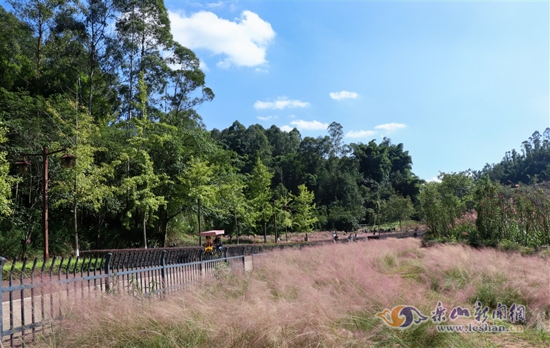 10月27日,记者来到位于乐山中心城区的嘉州绿心公园绿心环线主入口处,虽然已入深秋,仍然一片绿意盎然,草木郁郁葱葱。沿着绿心公园环线前进,沿路可以看见粉黛乱子草、木芙蓉、格桑花、红枫等,粉的、红的、绿的、黄的.....五彩斑斓,如同打翻的调色盘,俨然一幅美丽的画卷,为秋日的嘉州增添了一抹别样的色彩。