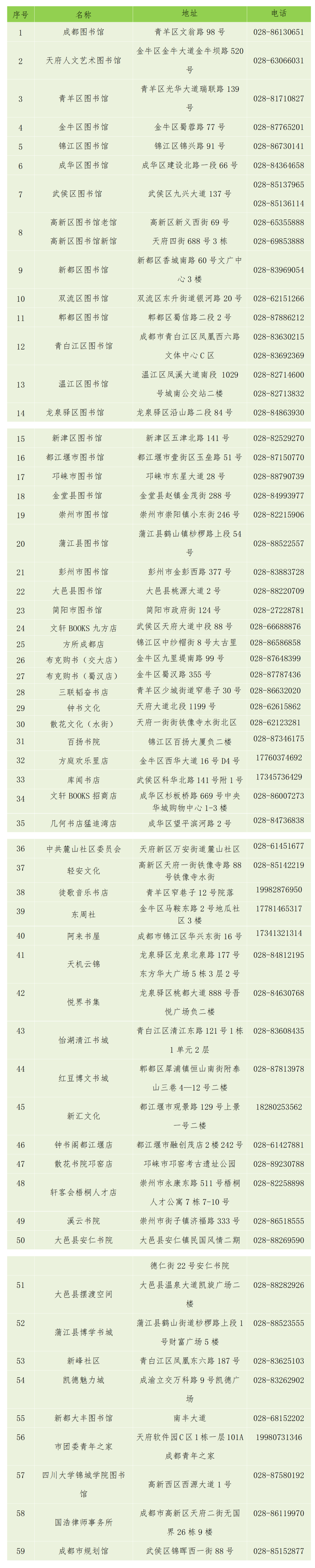 成都市22家公共图书馆