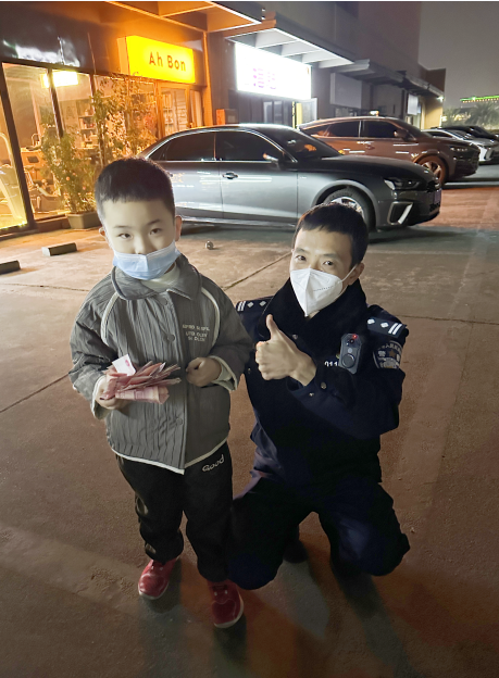 11月28日晚,赵俊熙小朋友和爸爸去超市购物的时候,在路边发现了一沓现金。赵俊熙首先想到的就是要将遗失的现金归还给失主,便和爸爸一起在原地等待。二十分钟后失主仍未归来,赵俊熙便给爸爸提议报警。就这样,成都高新区合作派出所接到了一个声音稚嫩的报警电话。