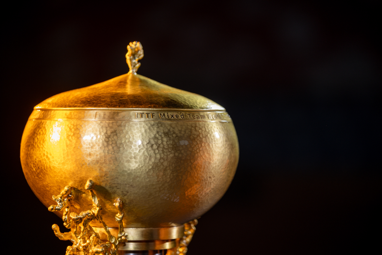奖杯以乒乓运动的力量与技巧为设计灵感,体现了“2023年国际乒联混合团体世界杯”赛事的精神追求与荣耀。