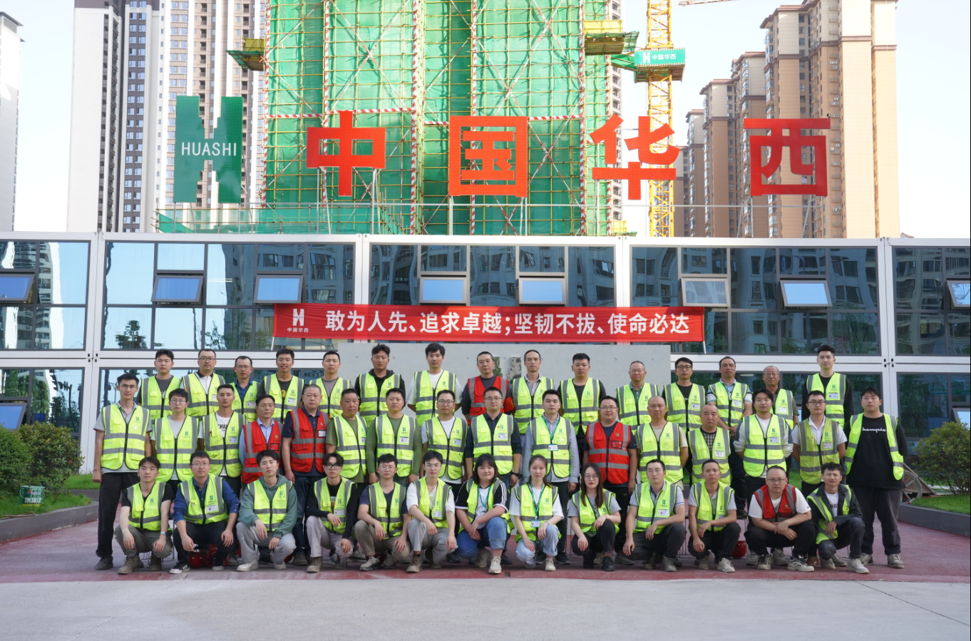自项目开工以来,华西铁军面对新冠肺炎疫情、高温、限电、汛期等一系列困难的一次又一次的挑战,全面推广中国华西优质工程建设经验,严格执行立体工序穿插,大力推进永临结合,落实样板引路制度。充分发挥善建铁军敢打硬仗、能打胜仗的作战精神,撸起袖子加油干,沉着应对,严控建设质量。