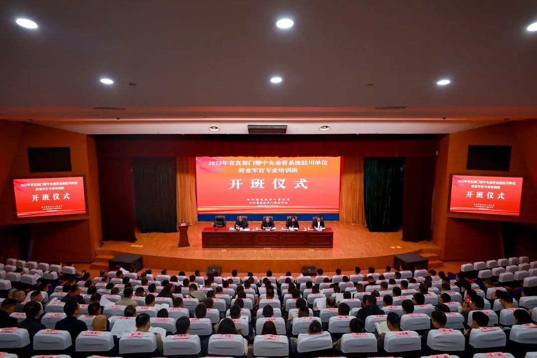 四川省退役军人事务厅移交安置处、省退役军人培训中心有关负责同志参加开班仪式。2023年转业安置到省直部门、中央驻川单位的170名转业军官参加培训。