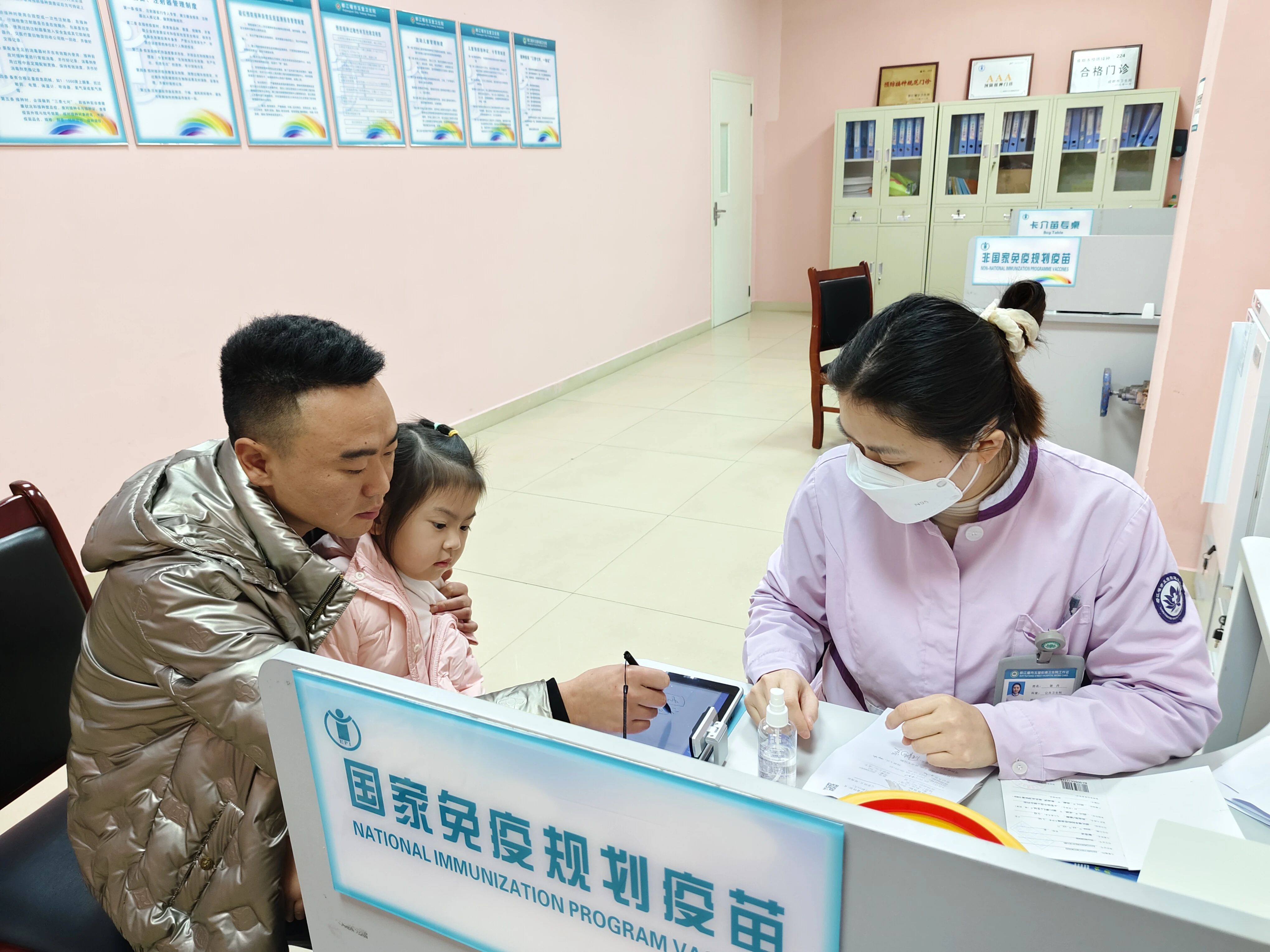 “请P0009号到1号窗口登记”“请P0012号到1号接种台接种”。12月5日,在玉堂街道卫生院数字化预防接种门诊,取号、叫号、登记、接种、签名、留观、信息入网,接种秩序井然有序。“现在带孩子来打预防针很方便,只需像银行一样取号排队,按照语音提示就好了。”带着女儿在等候接种的周先生说道。接种完成后,留观30分钟的时间里,孩子们在家长的陪伴下,在医院党员志愿者的健康宣教中完成留观。