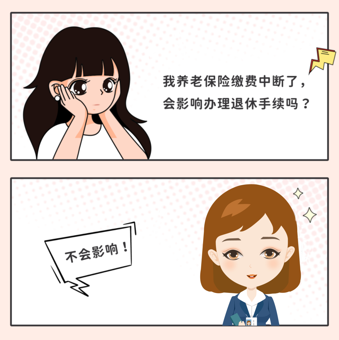 如果中断时间越长,缴费就越少,参保年限也就相应减少,个人账户累计储存额也越少,养老金也越低。如果长时间中断缴费,有可能在达到法定退休年龄时累计缴费年限不满15年, 就无法办理领取养老金手续,还需继续延长缴费至满规定年限后,才能办理领取养老金手续。