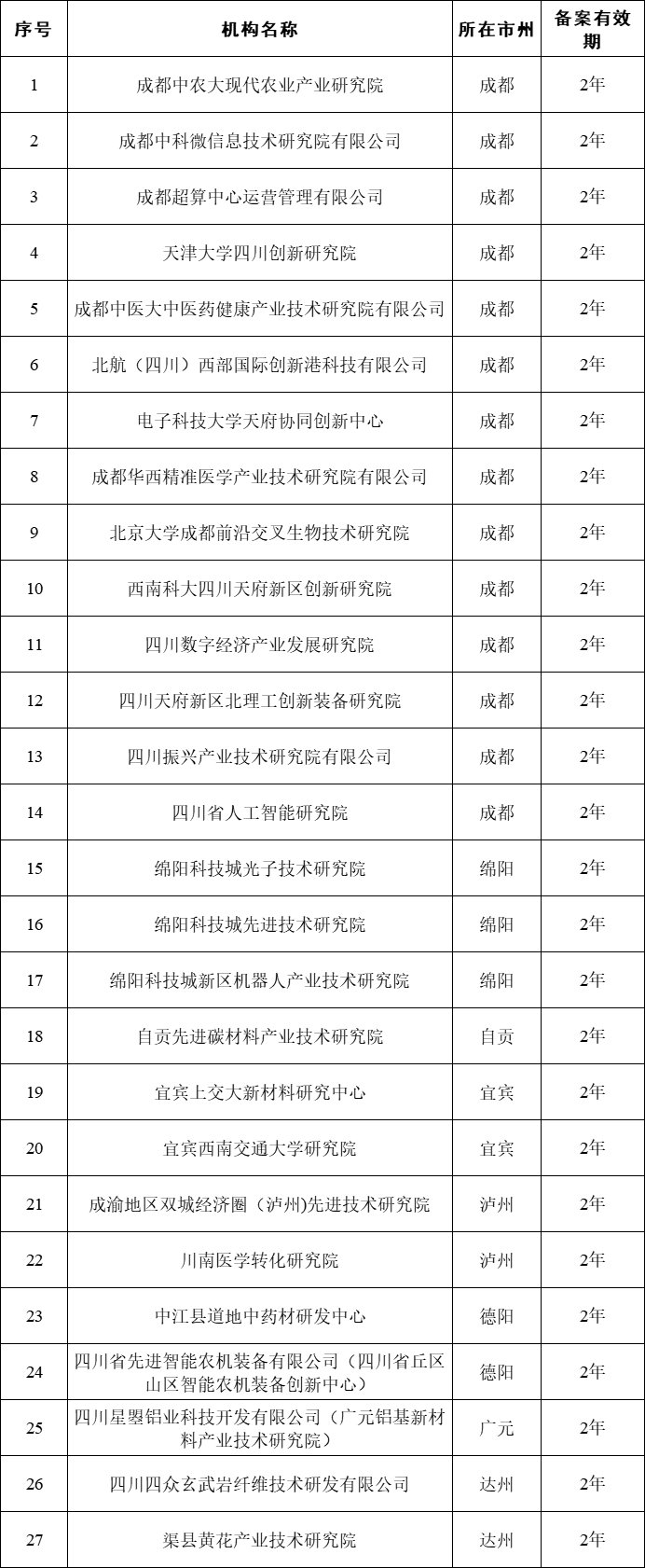 四川省2023年度省级新型研发机构拟备案名单