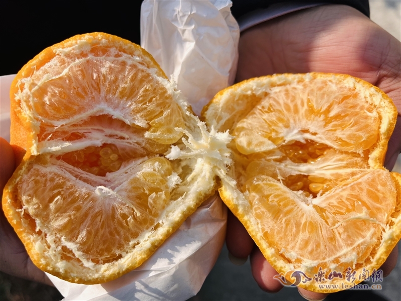 一年好景君须记,最是橙黄橘绿时。仲冬时节,在雨台村集体经济示范果园里,井研县柑橘园区办公室技术负责人谢桃明轻轻地拆开套在耙耙柑上的纸袋,熟练地掰开橘子,将一瓣果肉送进嘴里。“水分充足、甜度适中,今年的耙耙柑口感更好。”谢桃明高兴地说道。