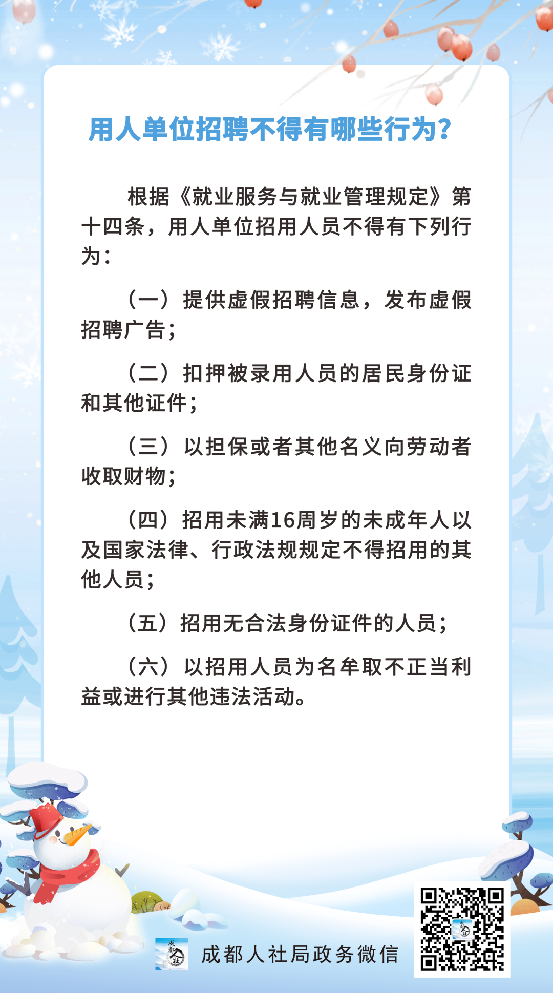 用人单位招聘不得有哪些行为?成都人社局提醒