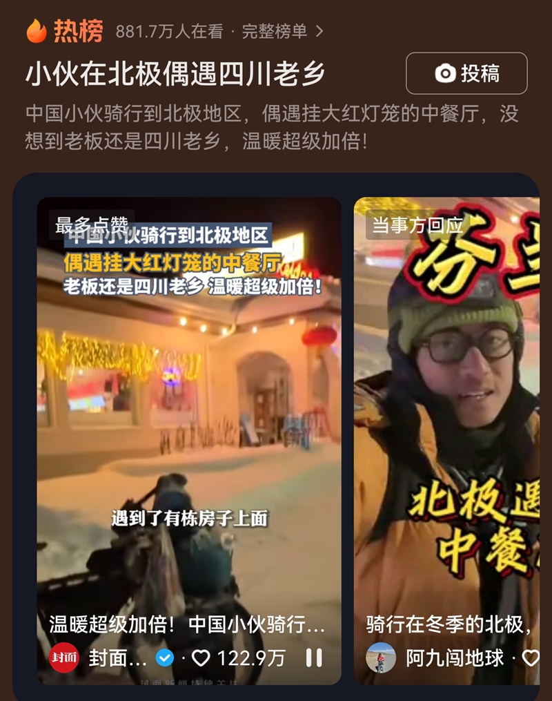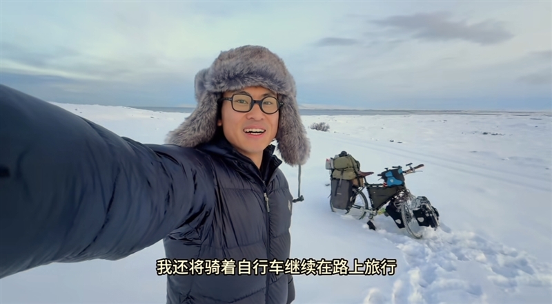 话题#小伙在北极骑行 偶遇四川老乡#