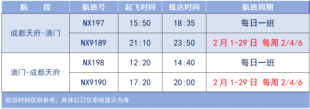 ▲2月1日起,澳门航空加密成都天府直飞澳门航线
