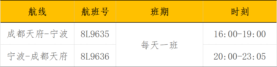 ▲祥鹏航空恢复成都天府直飞宁波航线的航班时刻
