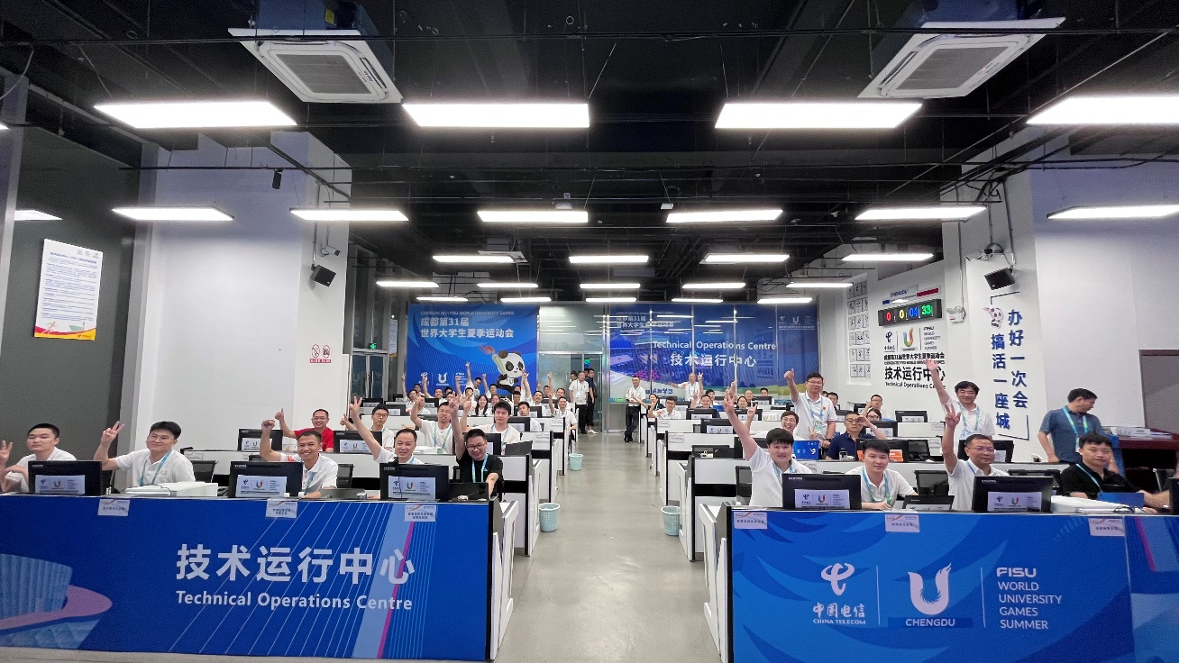 成都大运会期间,中国电信保障团队在成都大运会信息技术运行中心开展工作
