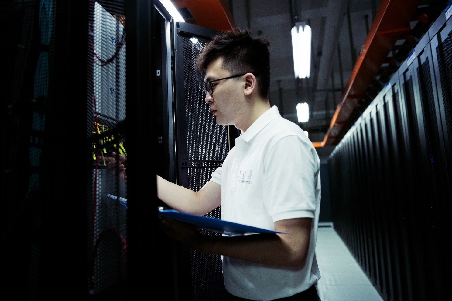 中国电信四川公司网络工程师在数据机房巡检设备