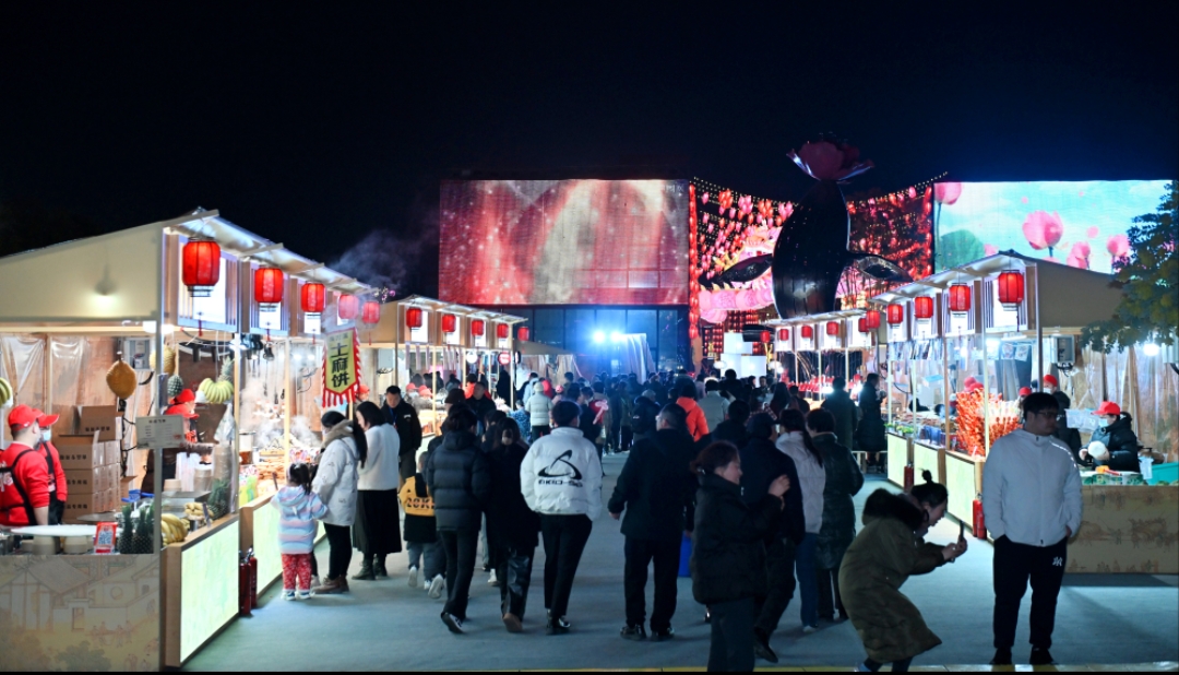 走进集中消费区,仿佛开启了一段时光穿越之旅。本届灯会传承“十二月市·正月灯市”基因,重现唐宋商业文化繁华景象,以经典美食、彩灯文创、潮玩好物、国潮旅拍、非遗传承、花卉集市、围炉煮茶、互动游戏等特色业态打造消费新场景,特色商家琳琅满目,各地美食小吃汇聚一堂,让你既能尽享舌尖上的美味,又能体验最具烟火气的市井生活。