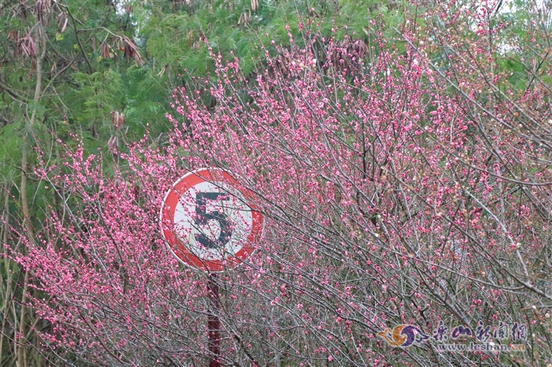 近日,记者走进绿心公园,看到位于芦山湿地到廊桥道路两侧的梅树姿态万千,娇艳的红梅缀满枝头,似雪的白梅点缀其间。盛放的梅花大片大片氤氲开来,远远望去,像弥漫的粉色烟霞,如梦似幻,美不胜收。
