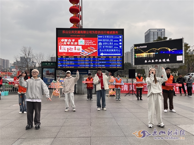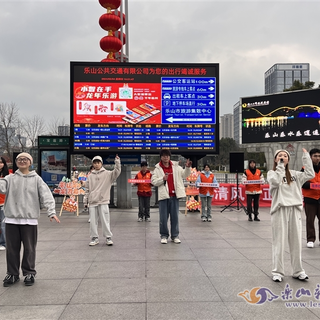 乐山新闻网讯(记者 周柳)2月4日,共青团乐山市委联合市中区文体旅游局、市中区文旅推广中心、共青团市中区委组织20名“返家乡”大学生,在乐山高铁站外举行“欢迎回‘嘉’温暖过节”快闪活动,温暖的歌曲《回乡路》拉开活动的序幕,给现场旅客送去新春祝福。
