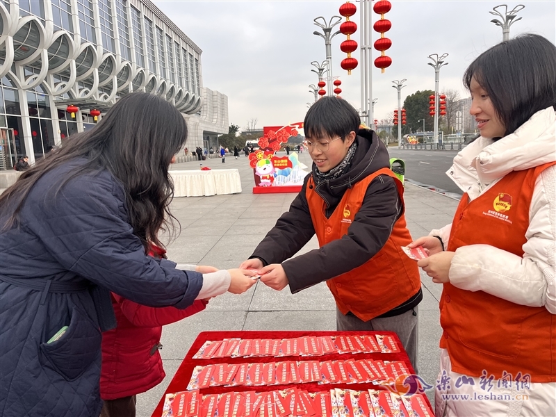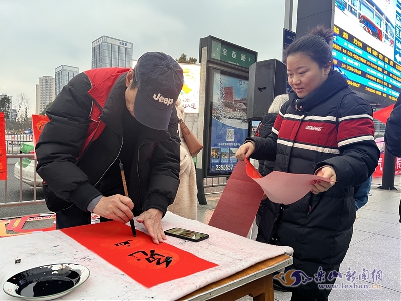 温暖的不止歌曲、字牌。在高铁站出站口,本土书法家现场撰写春联,为来往市民游客送出新年祝福,志愿者发放本地美食门店优惠券、折扣券,让返“嘉”市民、来乐游客纵享乐山美食。