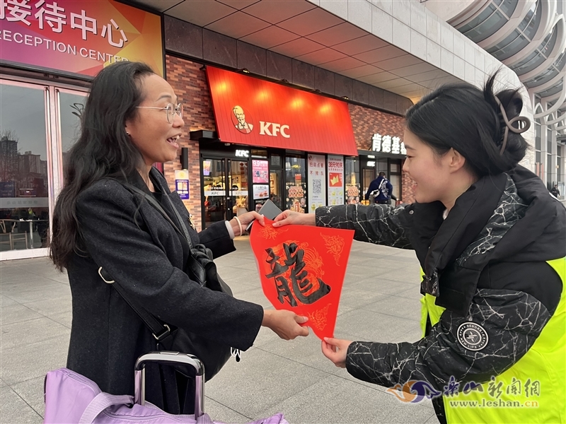 “刚走出车站就赶上了快闪活动,感觉家乡真的太暖心、太亲切了。”从广州赶回乐山过年的陈女士告诉记者,不仅有志愿者为她送上福字,还听到了暖心的歌曲,感受到浓浓的年味。