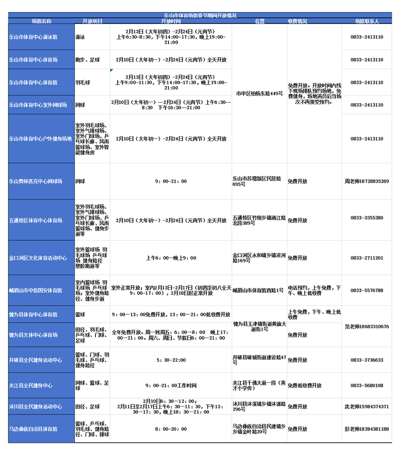 乐山的小伙伴们,想知道春节假期哪里可以运动吗?