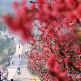 猩红鹦绿极天巧,叠萼重跗眩朝日。暖阳下的海棠花红晕润初妍,蜜蜂飞舞绕其间,野趣春情盎然,市民游客纷纷驻足拍照打卡,记录美好瞬间。