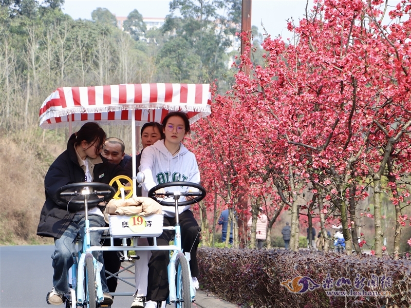 嘉州绿心公园内,不少市民游客趁春光正好,或骑车、或漫步,感受自然之美。“第一次来这里就看到这么美的花,天气又好,心情十分舒畅!”从宜宾到乐山探亲的陈女士高兴地说。